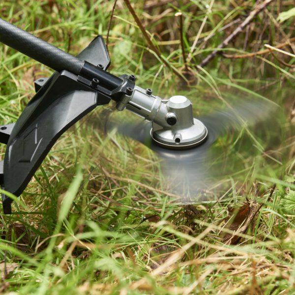 De machine is veelzijdig en kan worden gebruikt met de meegeleverde grasmaaikop of bosmaaierkop, maar ook met de RTX2300 rotocut, wat uw tuinwerkzaamheden tot een hoger niveau tilt. De draad in de grasmaaierkop zit vervat in een stootknopkop met manuele spoel. De maaierkop wordt geleverd met een draad van 2,4 mm, maar is geschikt voor draden met een maximale diameter van 3 mm zodat u ook moeilijker te maaien terrein de baas kunt.